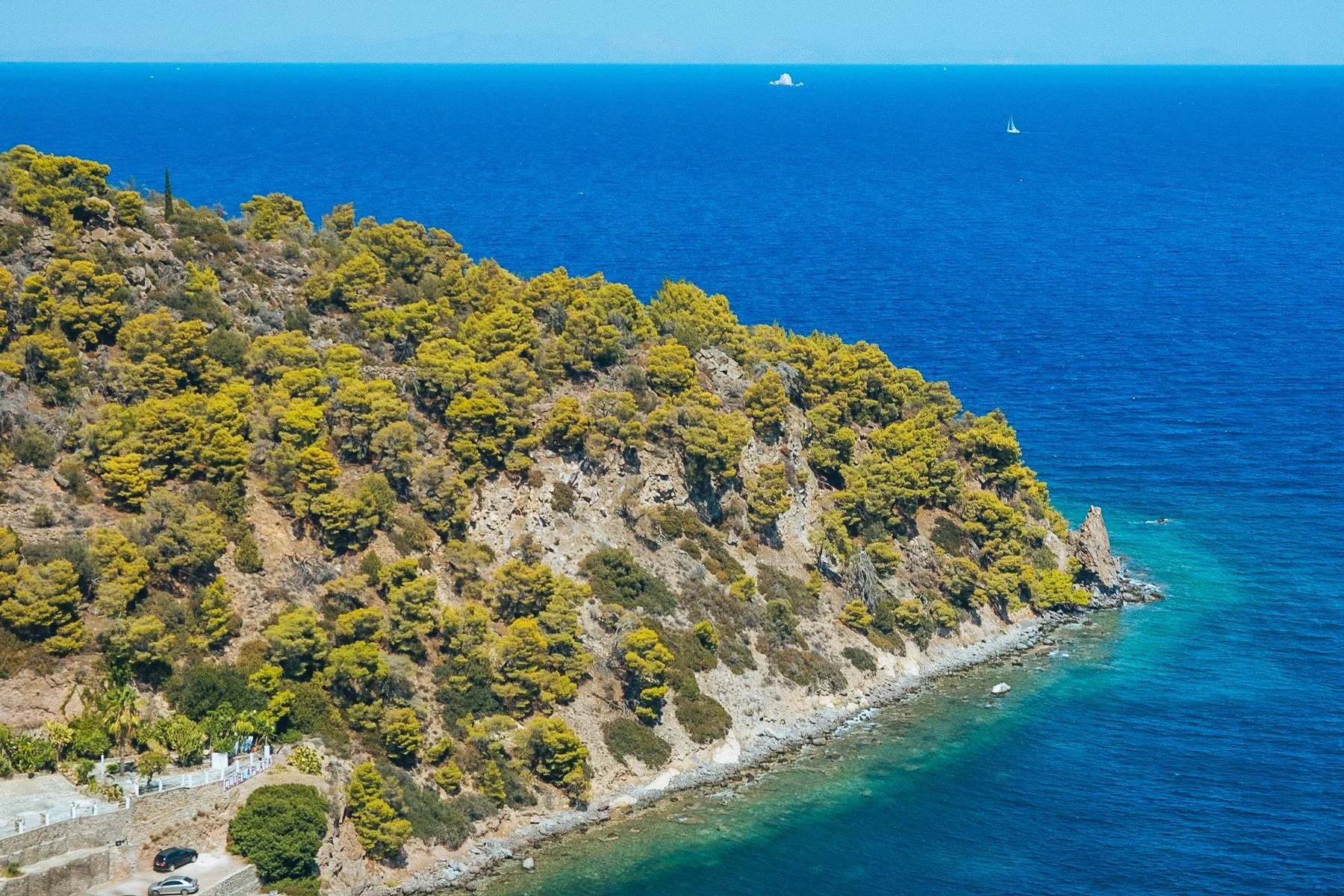 Methana is a peninsula near Poros. Because it is connected by a narrow 300m strip of land to the rest of Peloponnese, many people think it is an island. This place is one end of the volcanic arc of the South Aegean (which includes Nisyros, Milos and Santorini) and the volcano in the village of Kameni Chora is considered active. The last eruption took place in 240 BC and was described by Strabo and Pausanias.